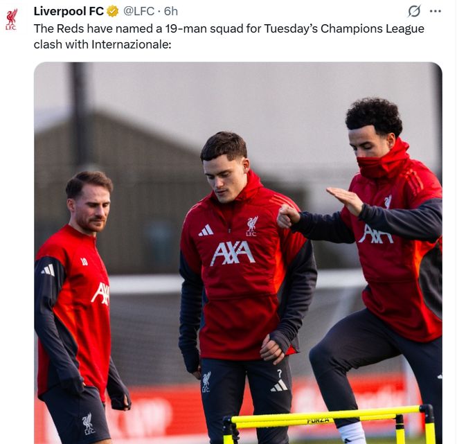 利物浦官方公布欧冠客战国米大名单,萨拉赫、加克波、缺阵,维尔茨、伊萨克在列。据报道,加克波、基耶萨和远藤航缺席是因为健康问题。